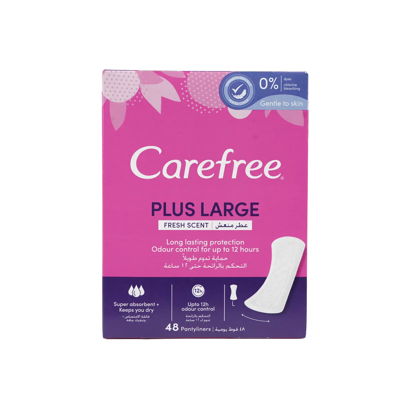 Benefits: - Infused with a refreshing fragrance to help you feel clean and fresh all day long. - Soft, cotton-like material ensures a comfortable fit and promotes airflow to reduce irritation. - Designed to be thin yet absorbent, these pantyliners fit seamlessly into your underwear without feeling bulky. - Hypoallergenic and gentle, helping to avoid irritation.